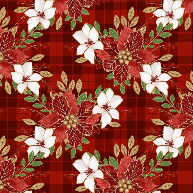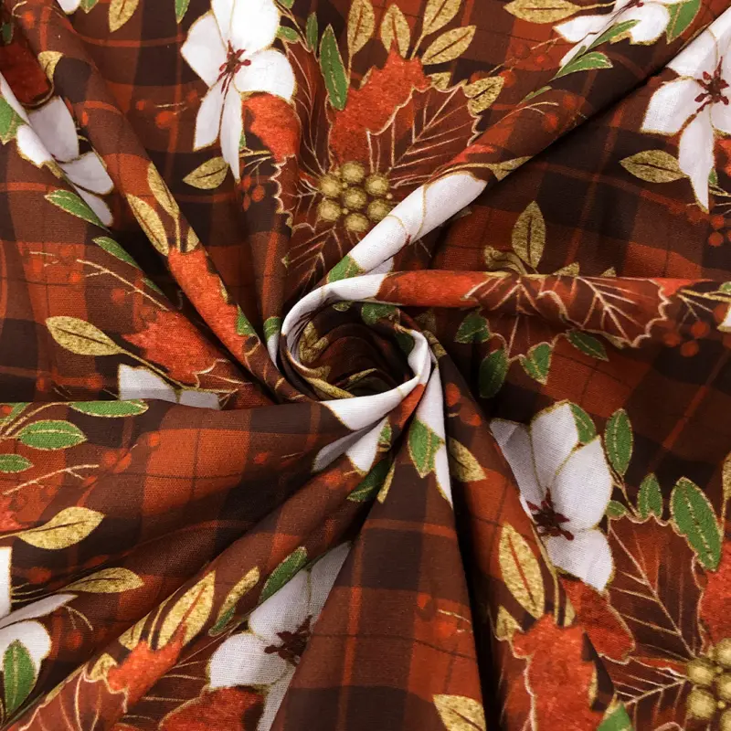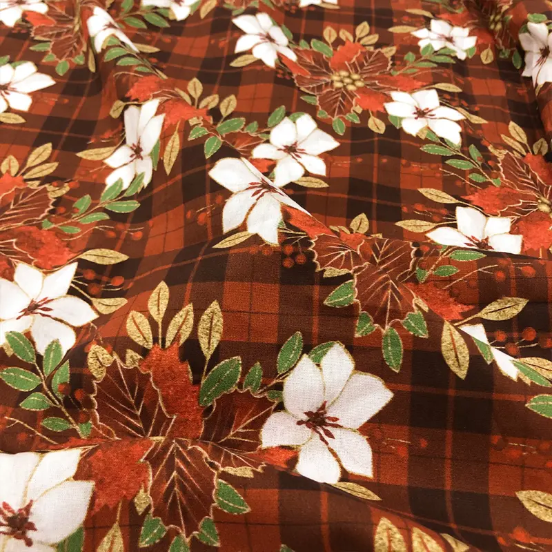 Tricoline Digital Flores De Natal Glitter 100% Algodão 1,50M Largura - Variante 2