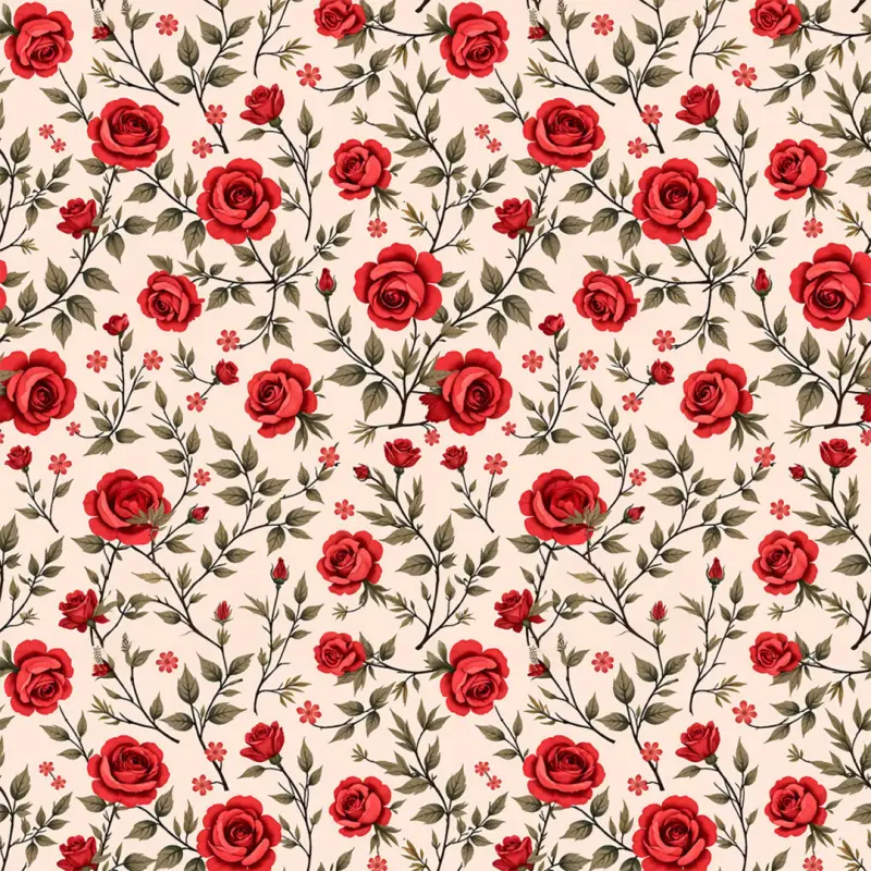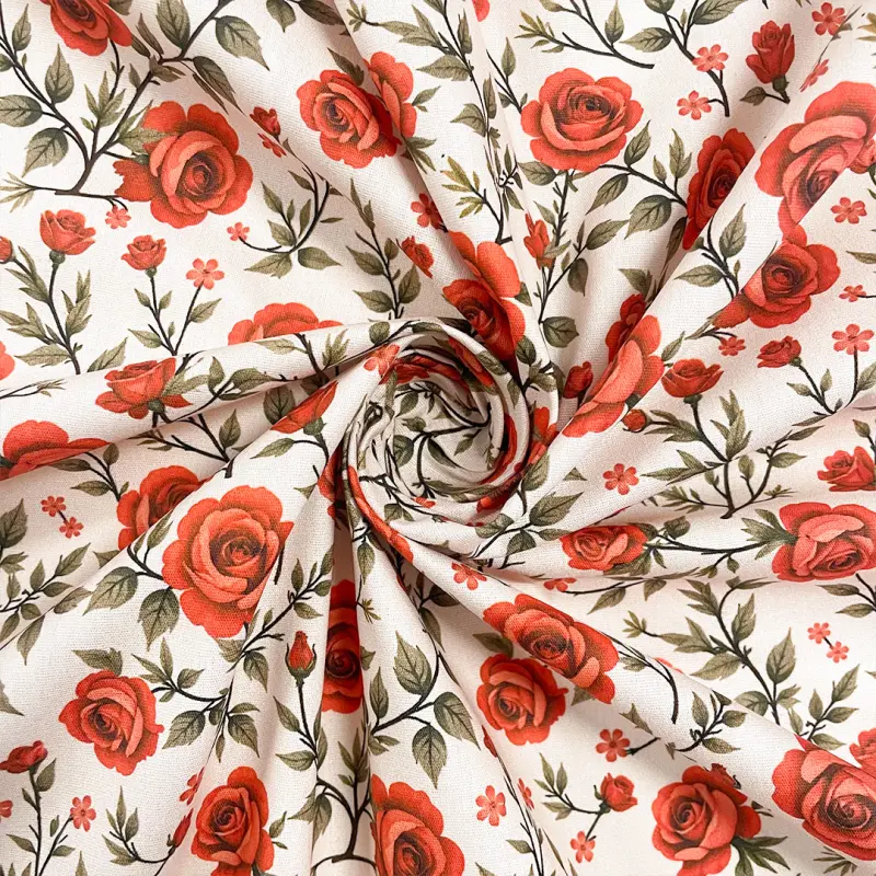 Tricoline Estampada Ramos Rosas Vermelhas 100% Algodão 1,50M Largura - Variante 1