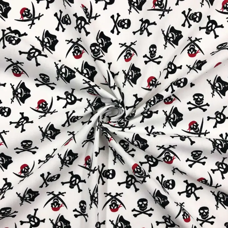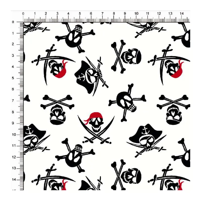 Tecido Tricoline Estampado - Caveira Pirata - 100% Algodão - 1,50M Largura - Variante 1