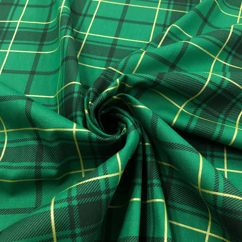 Tricoline Estampada Natal Xadrez Com Dourado 100% Algodão 1,50M Largura - Verde