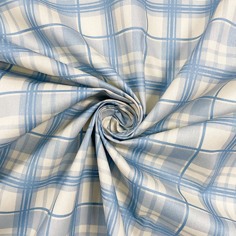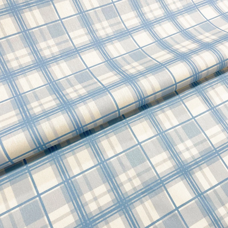 Tricoline Estampada Xadrez Para Composê 100% Algodão - Azul