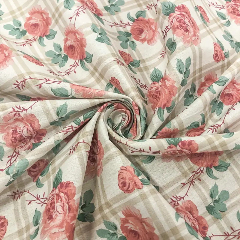 Tricoline Estampada Floral Fundo Xadrez 100% Algodão 1,50M Largura - Variante 1