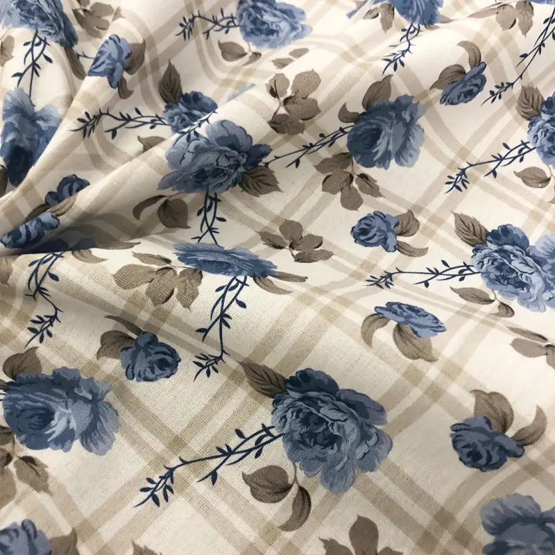 Tricoline Estampada Floral Fundo Xadrez 100% Algodão 1,50M Largura - Variante 2