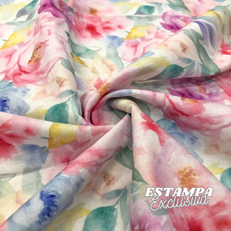 Tricoline Exclusiva Coleção Jardim Aquarela 100% Algodão 1,50M Largura - Variante 2