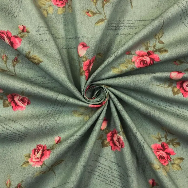 Tricoline Fernando Maluhy - Rosas Com Escrita - 100% Algodão - C04
