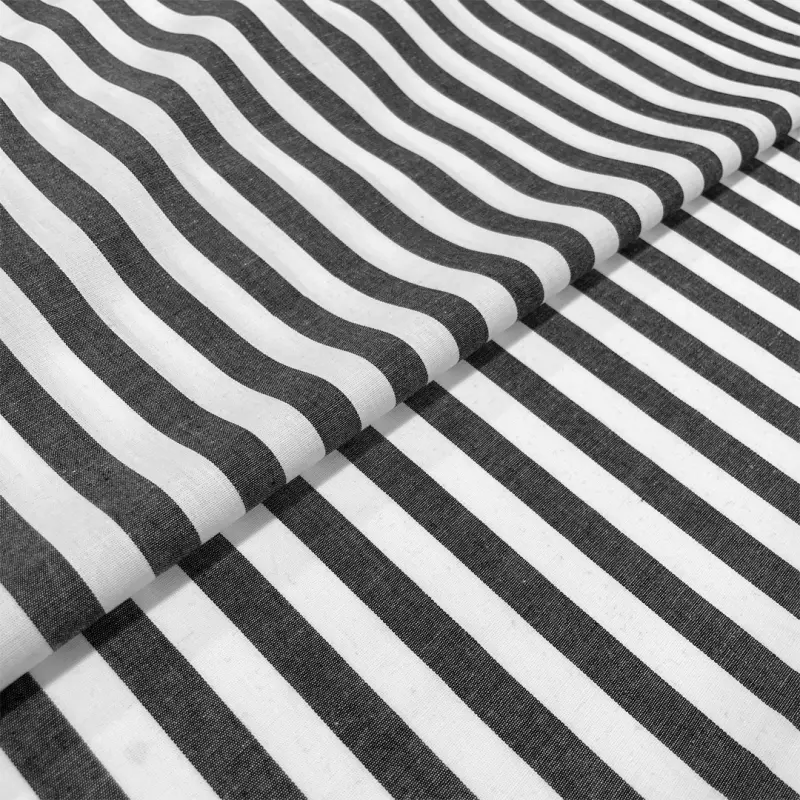 Tricoline Listras Grandes Fio Tinto 100% Algodão - Preto