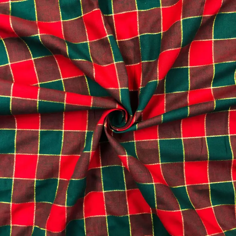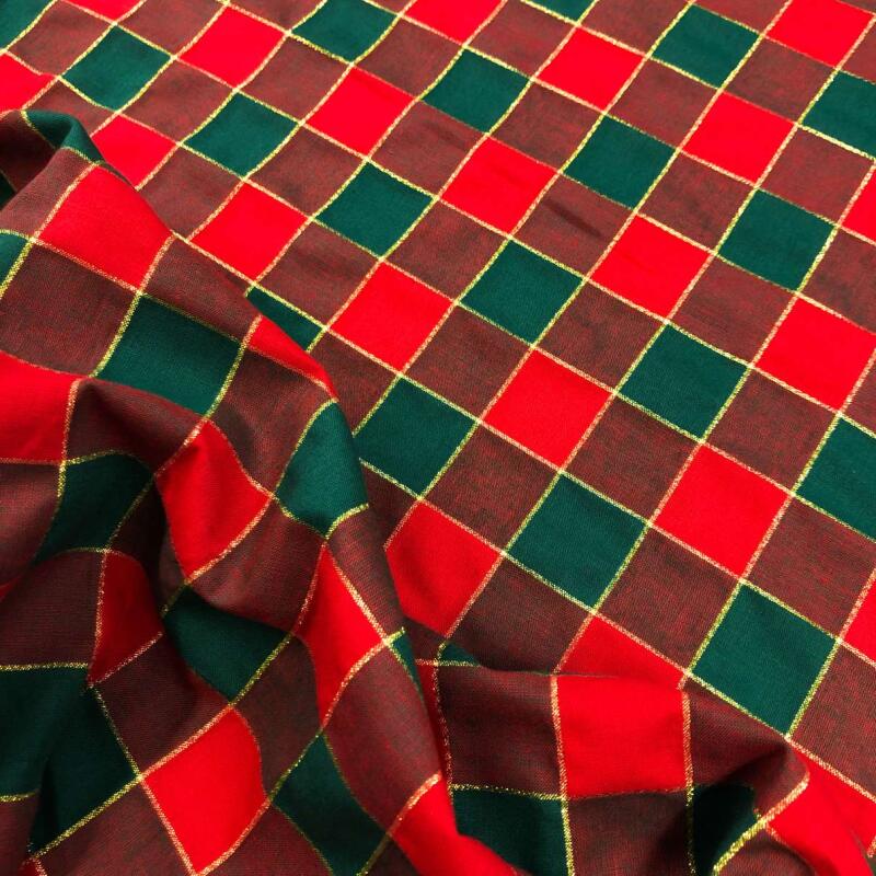 Tricoline Natal Xadrez Fio Tinto Com Lurex Dourado 100% Algodão - Rena 1026