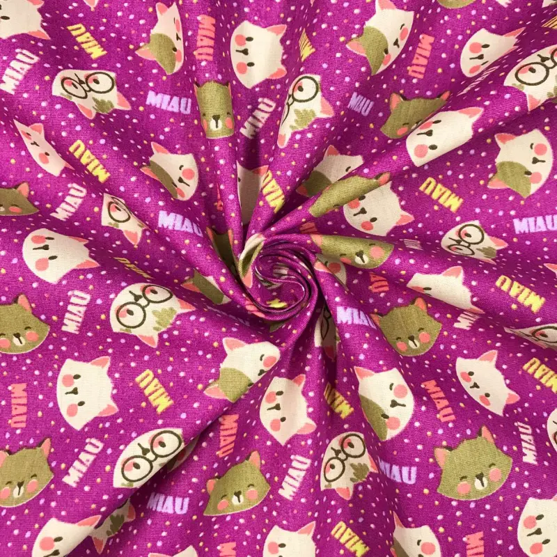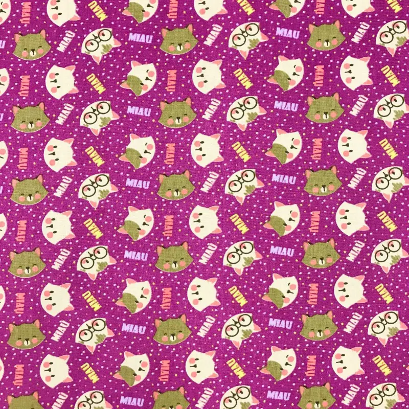 Tecido Tricoline - Gatinhos Miau - 100% Algodão - Variante 1