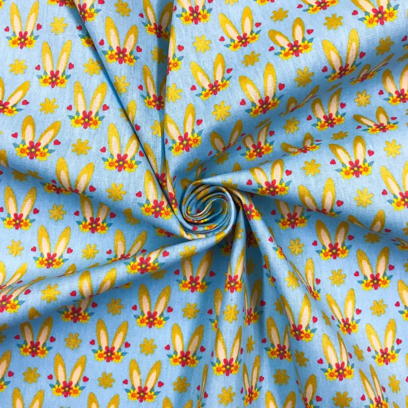 Tecido Tricoline - Páscoa Orelinhas Com Glitter - 100% Algodão - 1,50M Largura - Variante 1