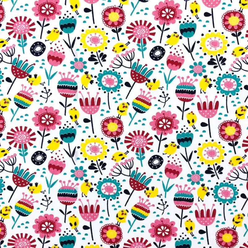 Tecido Tricoline - Passáro Com Flores - 100% Algodão - 1,50M Largura - Variante 1