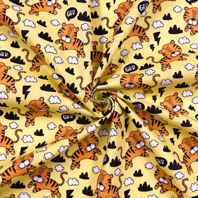 Tecido Tricoline - Tigre Fofo - 100% Algodão - 1,50M Largura - Variante 1