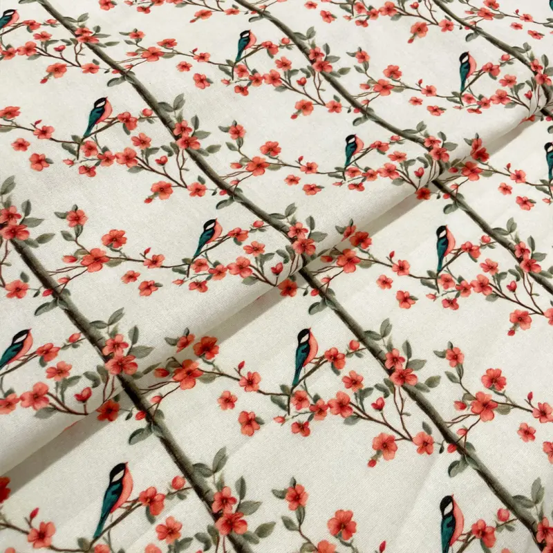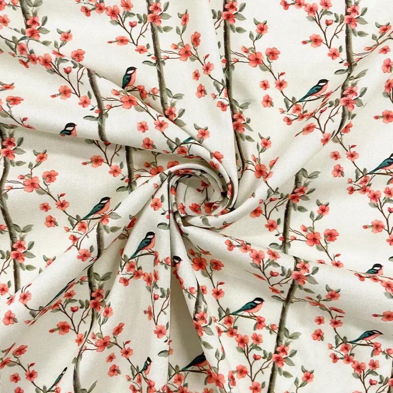 Tricoline Digital Fernando Maluhy Coleção Gorjeio 100% Algodão 1,50M Largura - Pássaro Com Flores E Tronco
