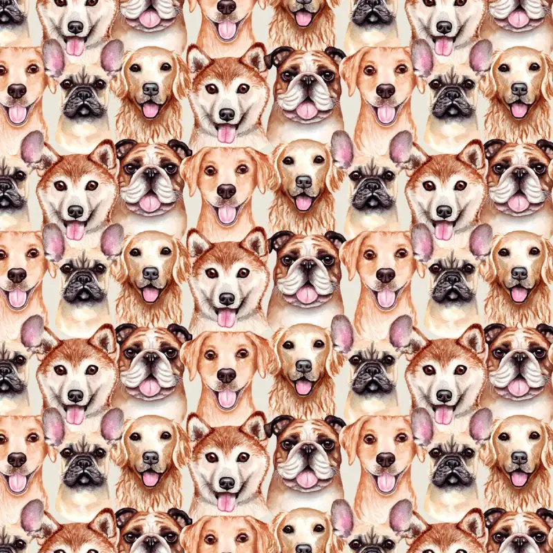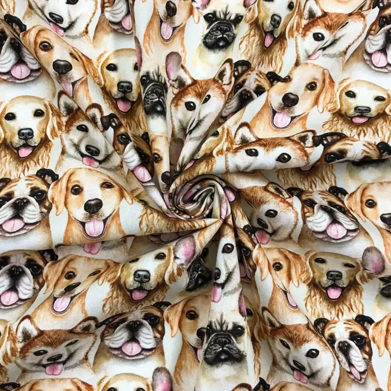 Tricoline Digital - Rostos Cachorros - 100% Algodão - Variante 1