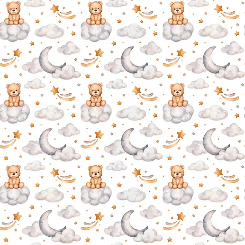 Tricoline Estampada Ursinho Na Nuvem 100% Algodão 1,50M Largura - Variante 1