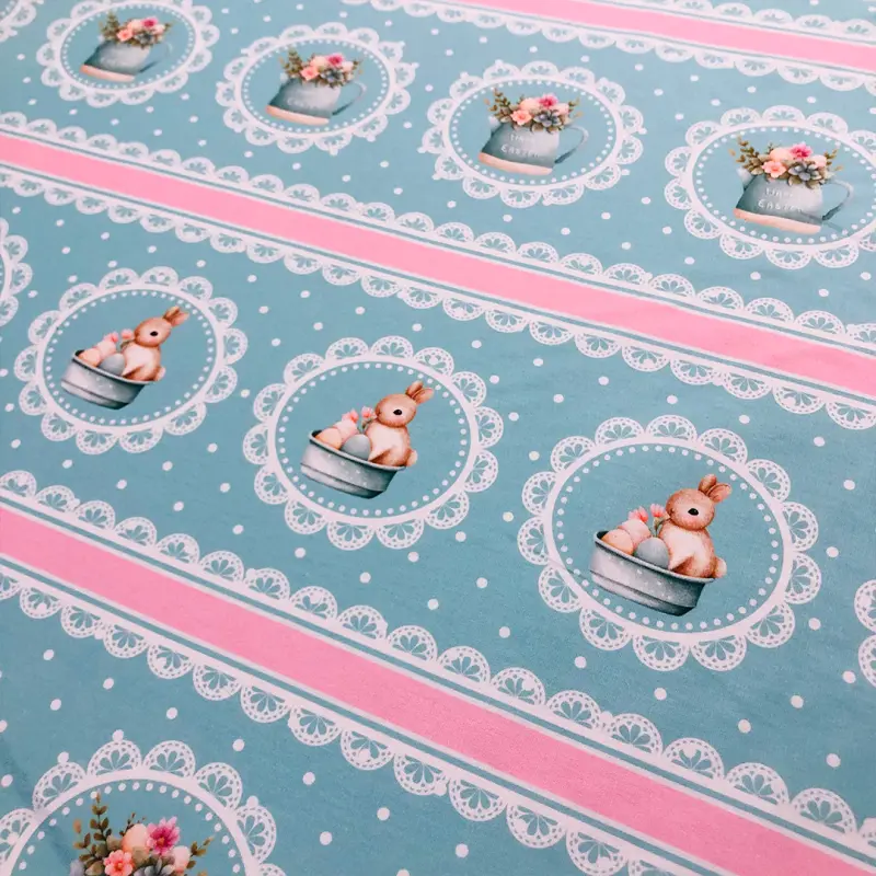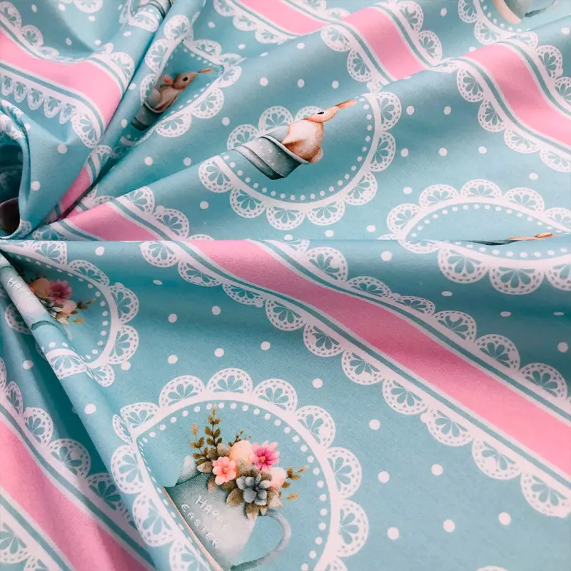 Tricoline Páscoa Barrado Azul Tifany 100% Algodão 1,50M Largura - Variante 1