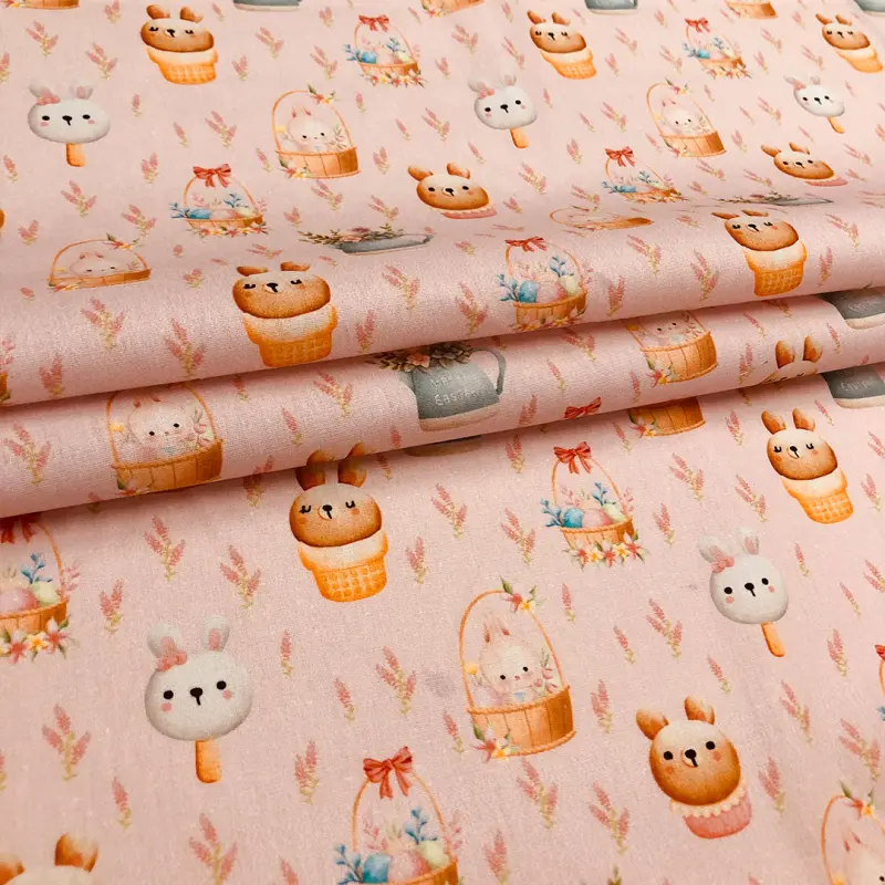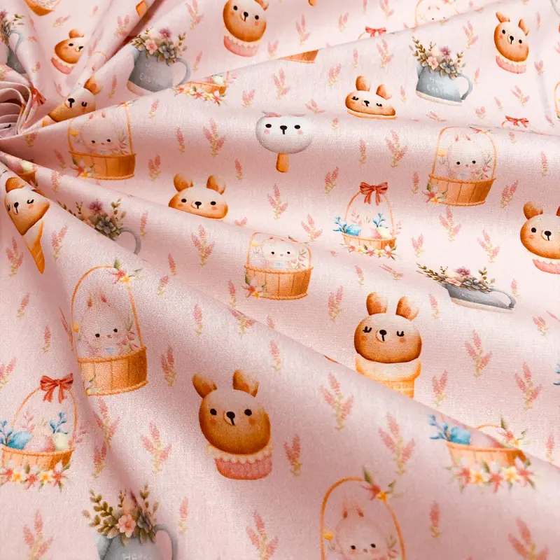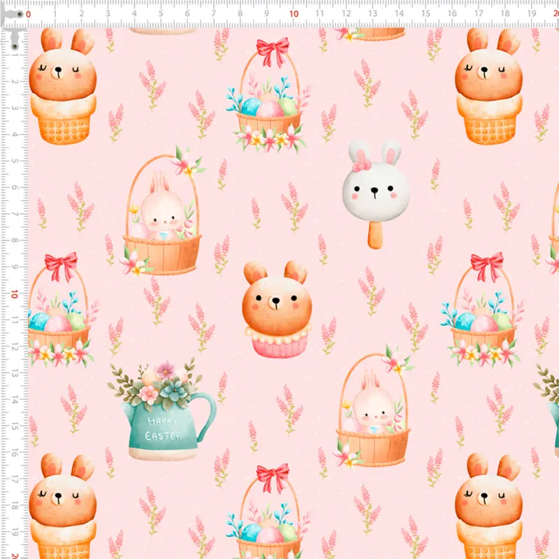 Tricoline Páscoa Cestinhas Fundo Rosa 100% Algodão 1,50M Largura - Variante 1