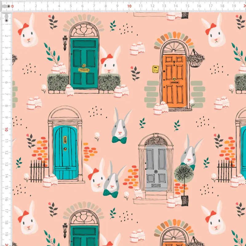 Tricoline Páscoa Porta Do Coelho 100% Algodão 1,50M Largura - Variante 1