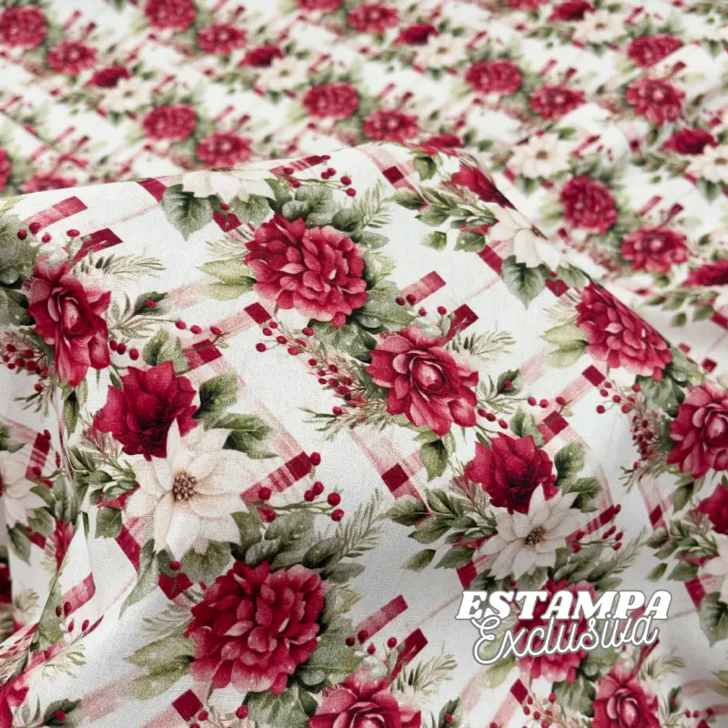 Tricoline Exclusiva Coleção Jlm Natal Florido 100% Algodão 1,50M Largura - Variante 1