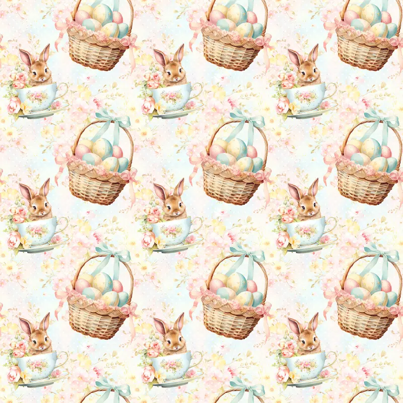 Tricoline Exclusiva Páscoa Coleção Ovinhos 100% Algodão 1,50M Largura - Coelho Na Xícara
