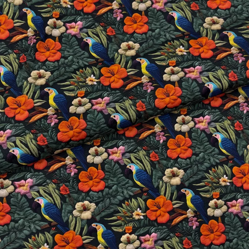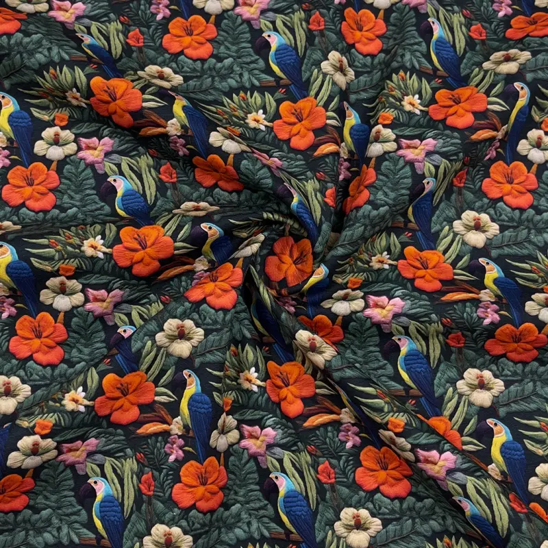Tricoline Digital 3D Fabricart Arara Bordada 100% Algodão 1,50M Largura - Variante 1