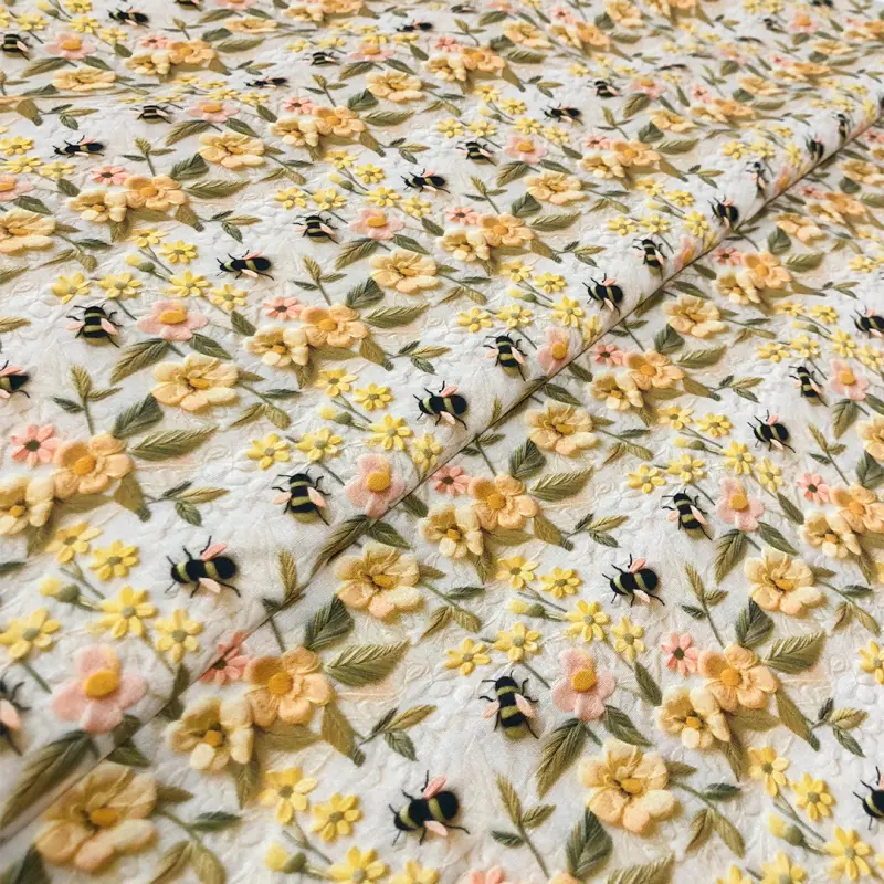 Tricoline Digital Fabricart Abelhas 3D Fundo Creme 100% Algodão 1,50M Largura - Variante 1