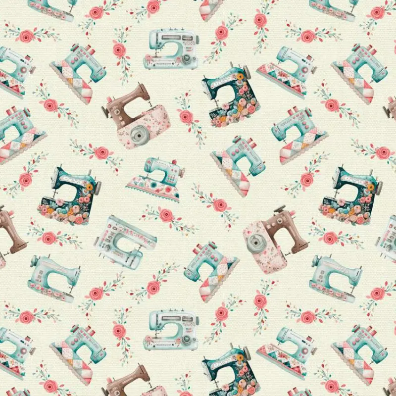 Tricoline Digital Fabricart Máquina E Flores 100% Algodão 1,50M Largura - Variante 1