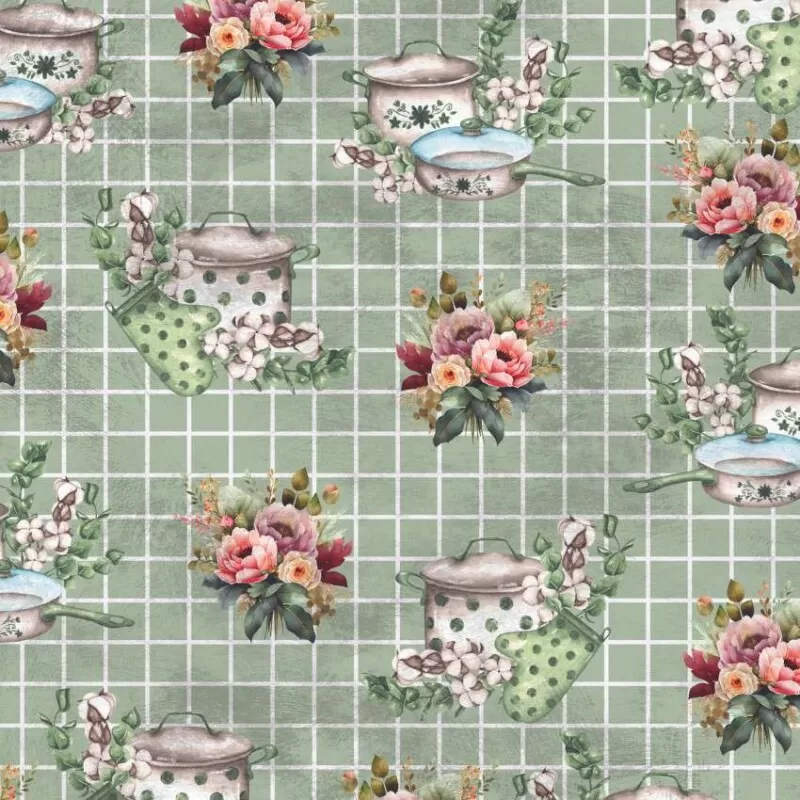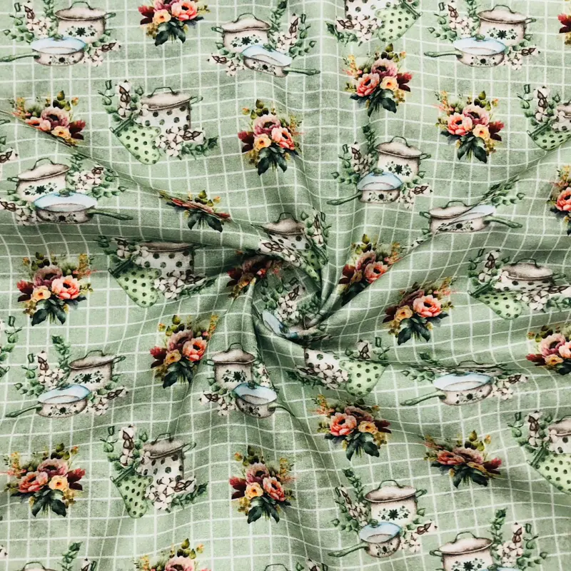 Tricoline Digital Fabricart Panelas E Luvas Verde 100% Algodão 1,50M Largura - Variante 1