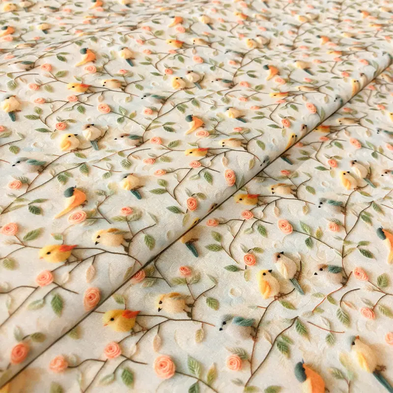 Tricoline Digital Fabricart Pássaros 3D Fundo Creme 100% Algodão 1,50M Largura - Variante 1