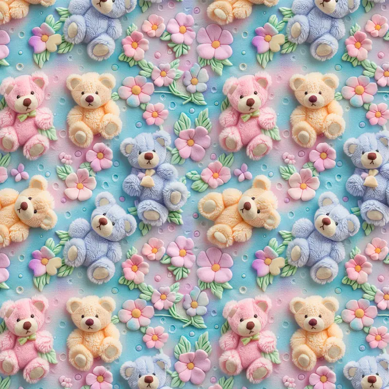 Tricoline Fabricart Digital 3D Ursos E Flores 100% Algodão 1,50M Largura - Variante 1