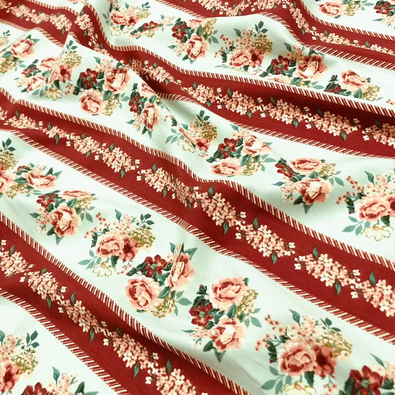 Painel Tricoline Fernando Maluhy Barrado Floral Fundo Verde 0,55 X 1,50M 10 Faixas - C01