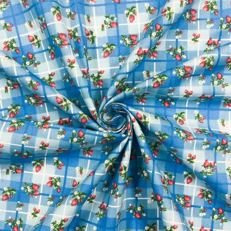 Tricoline Fernando Maluhy - Coleção Fresa Morango Com Xadrez - 100% Algodão - C01