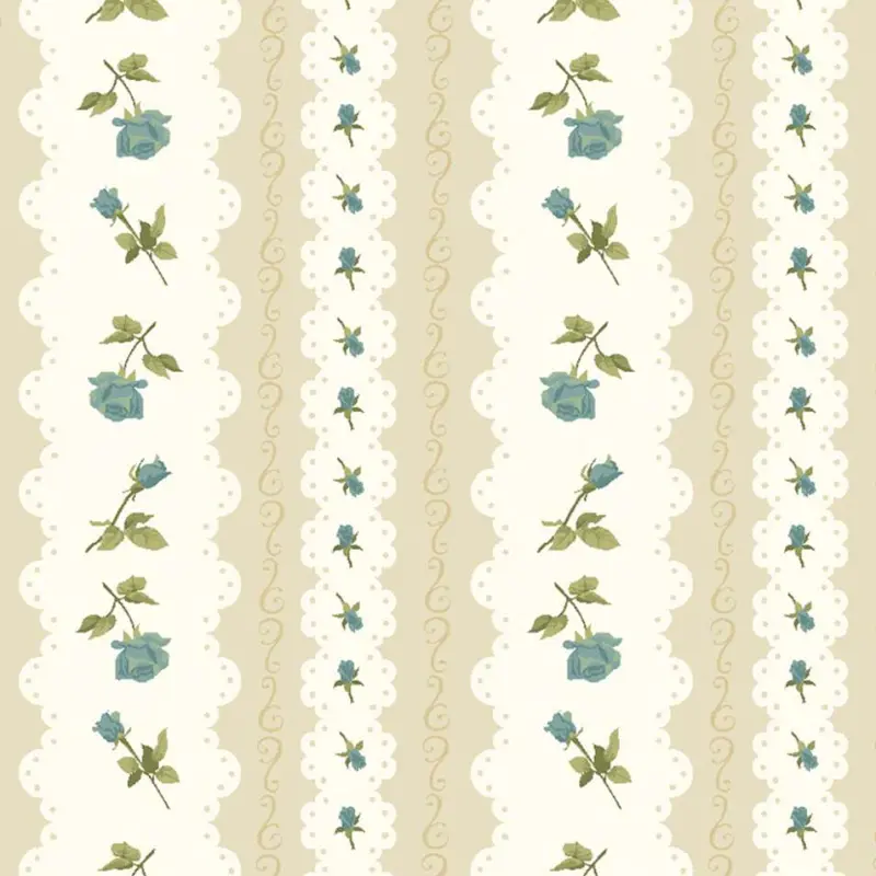 Tricoline Fernando Maluhy - Listrado Bege E Azul - 100% Algodão - C03