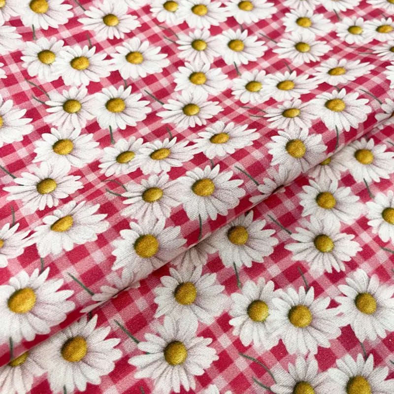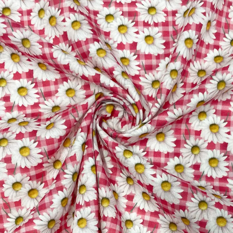Tricoline Digital Fabricart Coleção Margaridas 100% Algodão 1,50M Largura - Fundo Pink