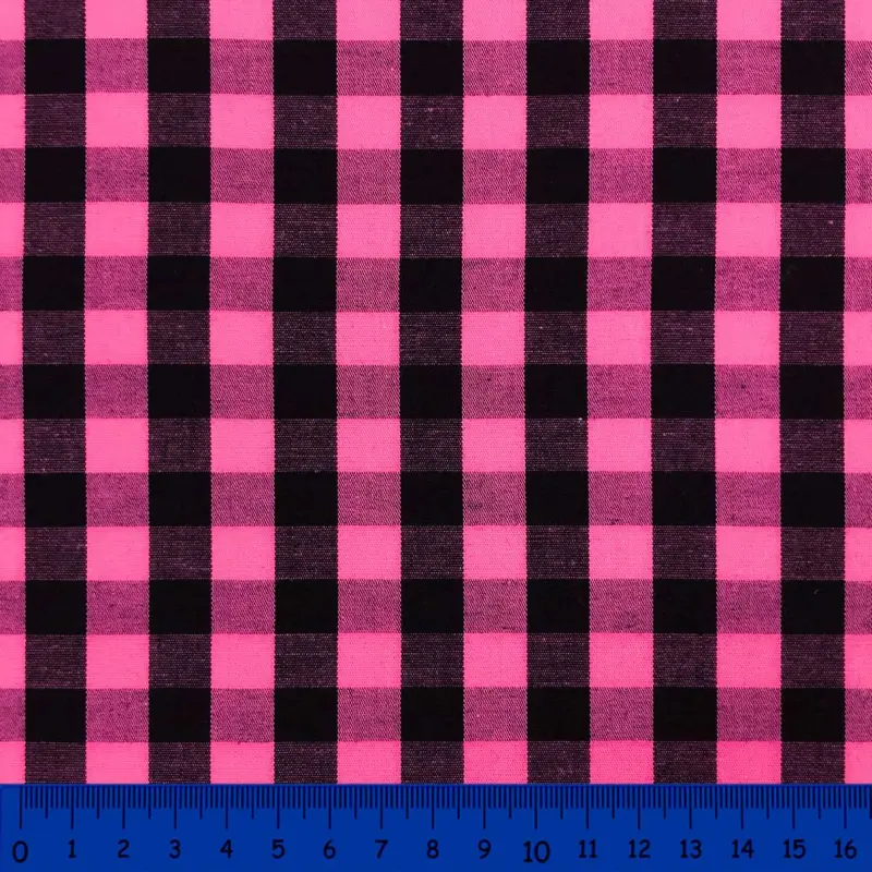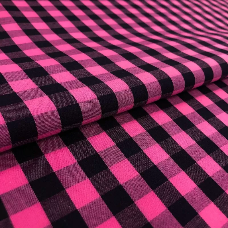 Tricoline Xadrez Fio Tinto - Extra Grande - 100% Algodão - Pink Com Preto