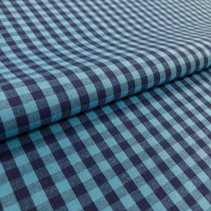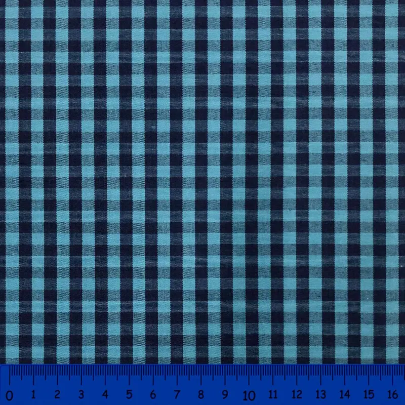 Tricoline Xadrez Fio Tinto - Grande - 100% Algodão - Azul Com Marinho