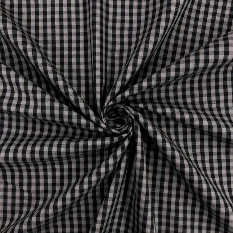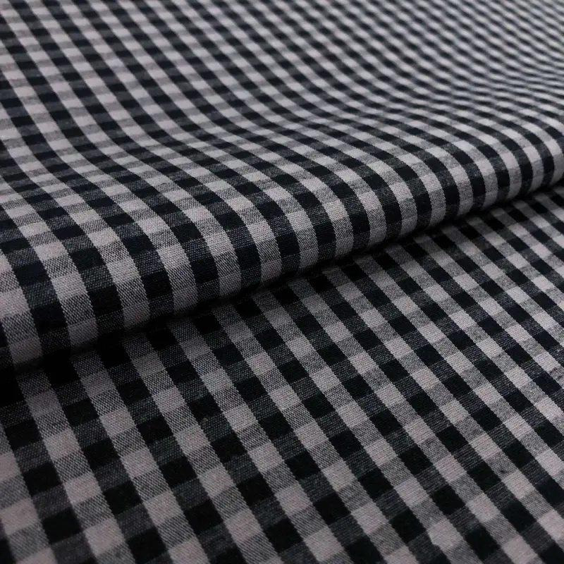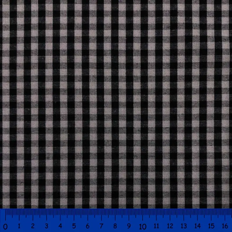 Tricoline Xadrez Fio Tinto - Grande - 100% Algodão - Chumbo Com Preto