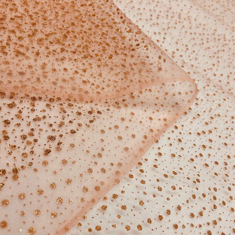 Tule P.a. Com Bolinhas De Glitter Permanente 100% Poliester 1,55M Largura - Rosê