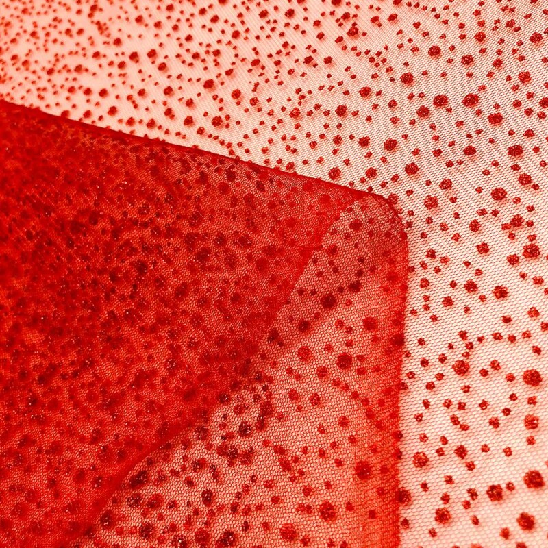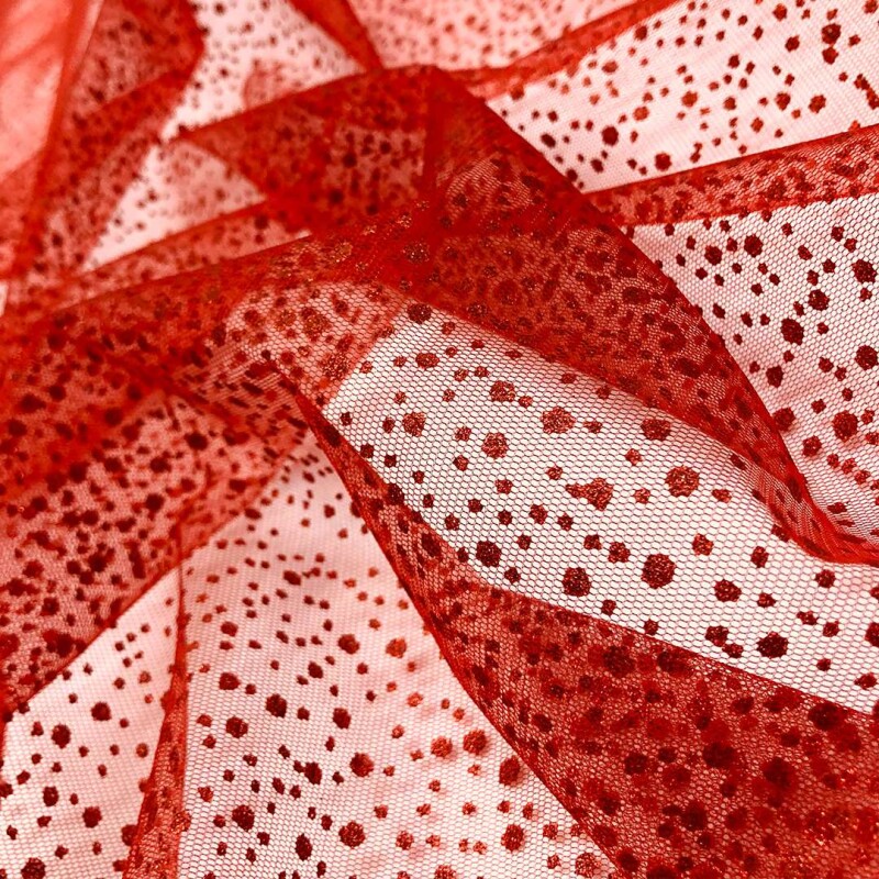 Tule P.a. Com Bolinhas De Glitter Permanente 100% Poliester 1,55M Largura - Vermelho