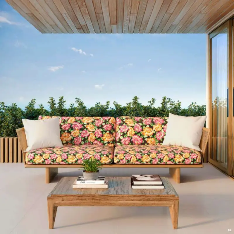 O tecido ACQUABLOCK® IMPERMEÁVEL KARSTEN é feito especialmente para estofados de área externa, como sofás e almofadas beira-mar ou piscina, pois possuem revestimentos que protegem todo tecido contra vários fatores, como: