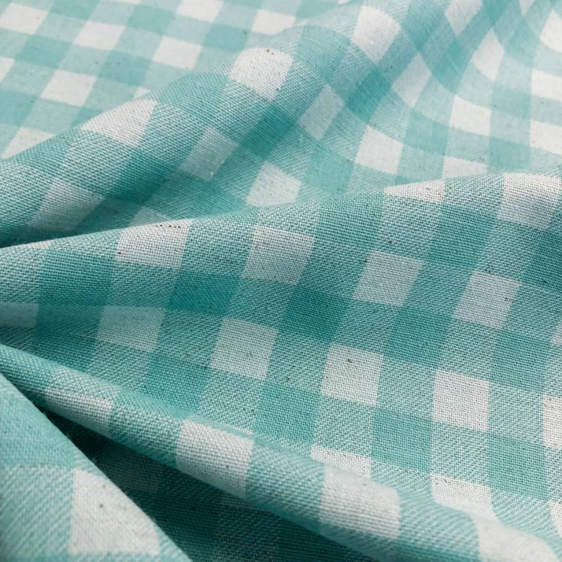 Linho Estampado Premium Xadrez 80% Algodão 20% Linho - Azul Turquesa