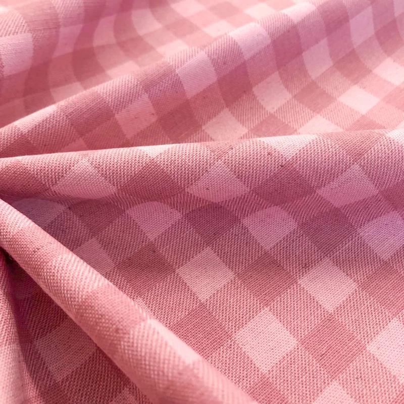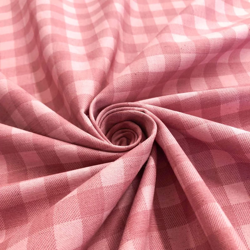 Linho Estampado Premium Xadrez 80% Algodão 20% Linho - Rosê