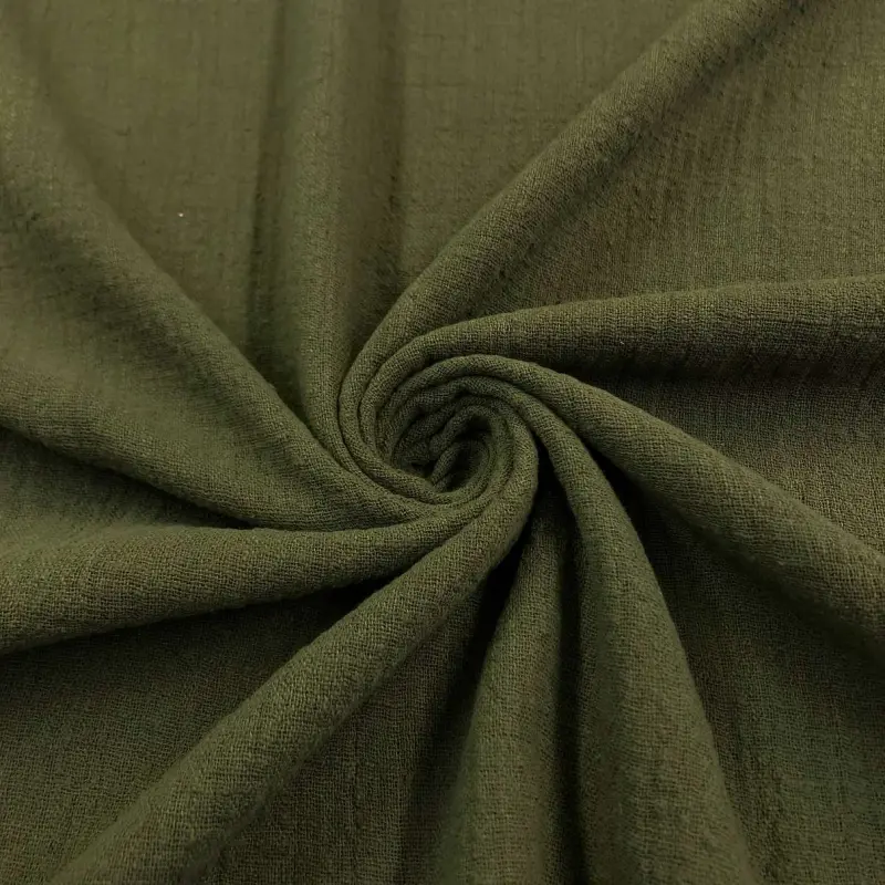 Tecido Gaze Rústica Para Vestuário Ibiza 100% Algodão 1,30M Largura - Verde Oliva