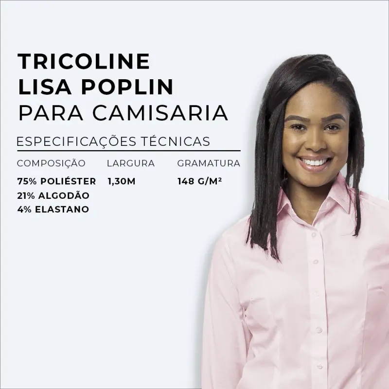 Perfeita para camisaria social, uniformes corporativos elegantes e peças que exigem alto padrão de acabamento, a Tricoline Ibiza da DOPTEX entrega tudo: estética, funcionalidade e durabilidade.