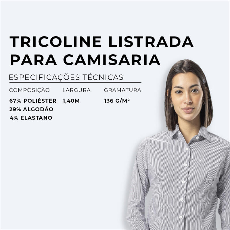 Com largura de 1,40m, o tecido apresenta ótimo rendimento, sendo indicado para a confecção de camisas sociais, fardamentos elegantes, jalecos e peças corporativas com mais conforto ao vestir.